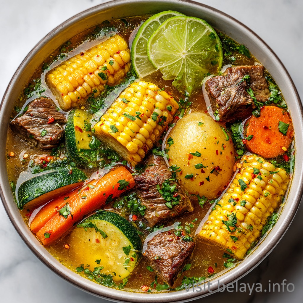 Slow-simmered beef shanks create a rich, golden broth, while hearty vegetables like potatoes, corn, and cabbage soak up every ounce of its deep flavor. The gentle heat of jalapeños and the brightness of fresh lime juice balance the richness, turning a humble pot of soup into a bowl of warmth and tradition.