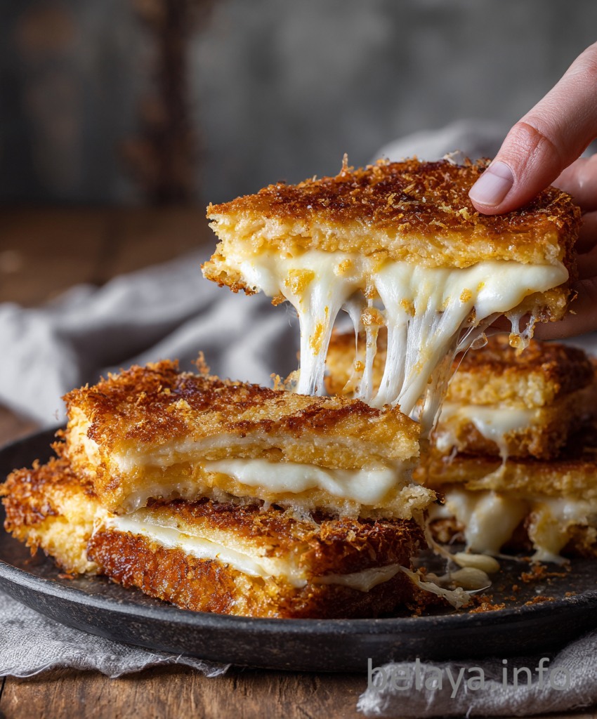 This helps the coating firm up and prevents the cheese from leaking during frying.