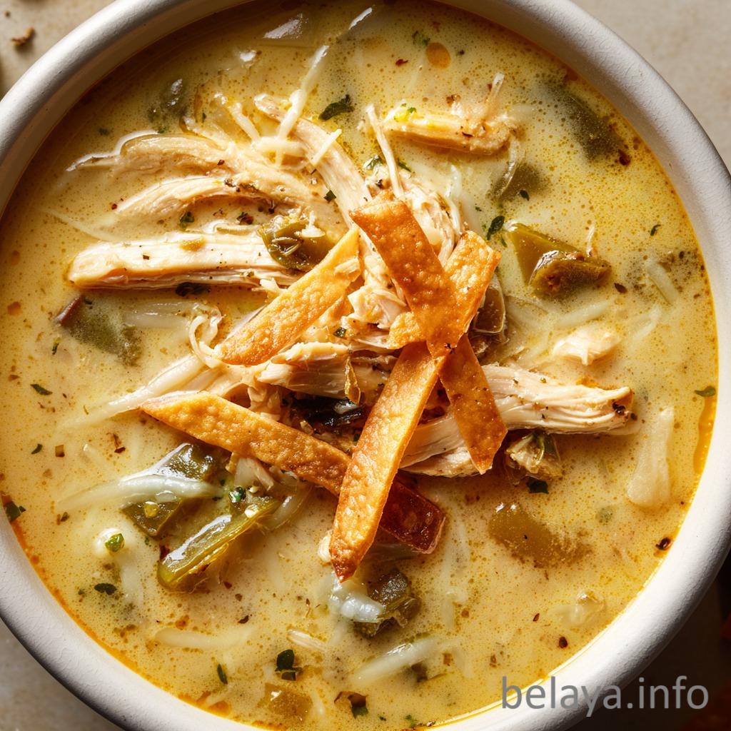 Poblano Chicken Tortilla Soup is a hearty and flavorful dish that brings together the smoky heat of poblano peppers with tender chicken, enchilada sauce, and salsa verde.