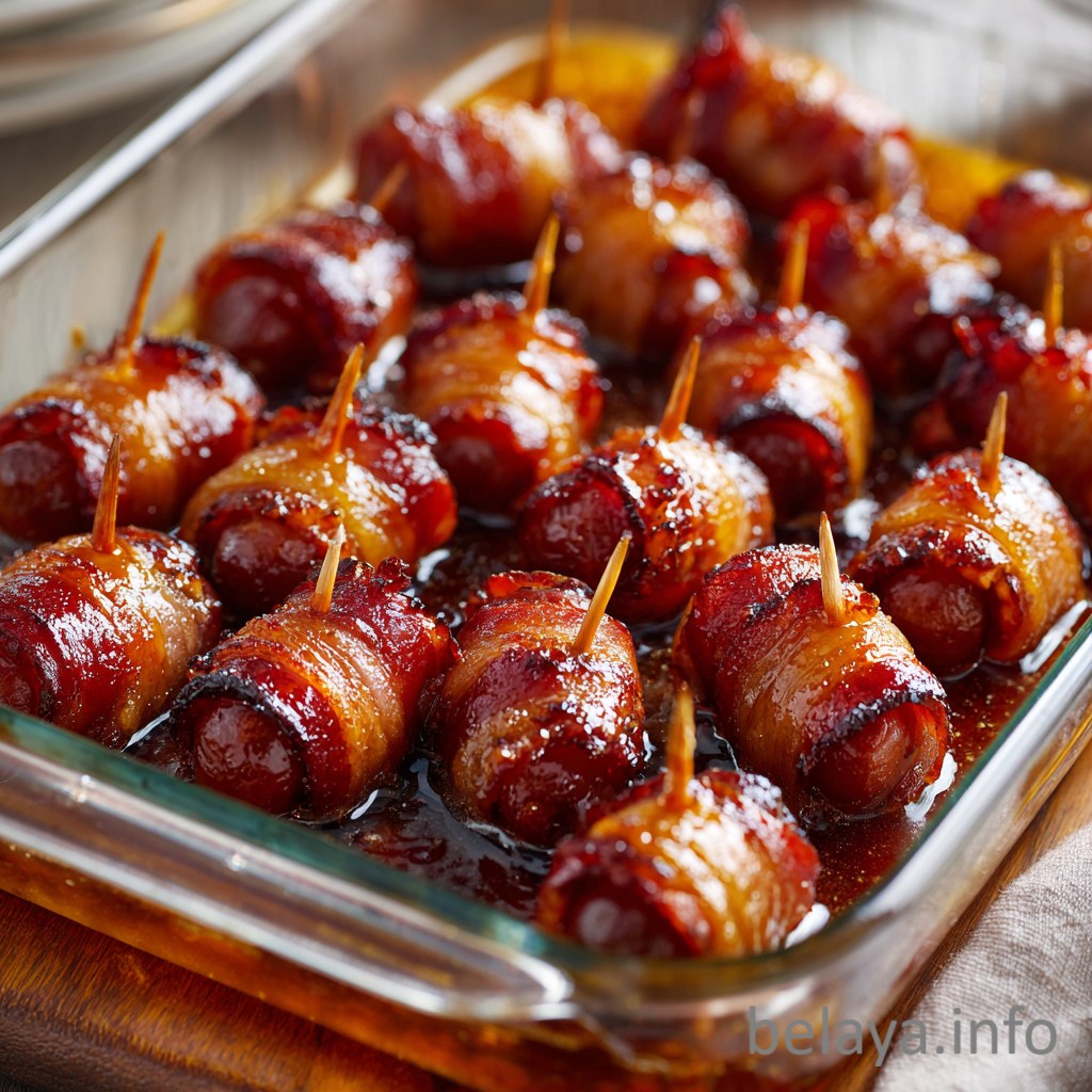 Bake for 30–35 minutes, or until the bacon is golden and caramelized. For extra crispiness, switch the oven to broil and let them brown for an additional 1–2 minutes. Serve warm and enjoy!
