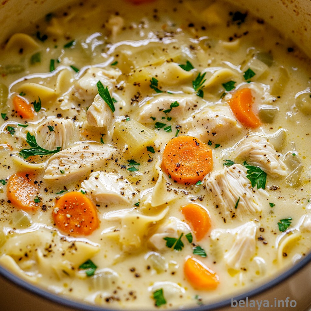 Cooked Chicken – The heart of the soup, providing rich protein and a tender bite. Shredded chicken absorbs the creamy broth beautifully, ensuring each spoonful is hearty and flavorful. Rotisserie or leftover roast chicken works perfectly for added depth.