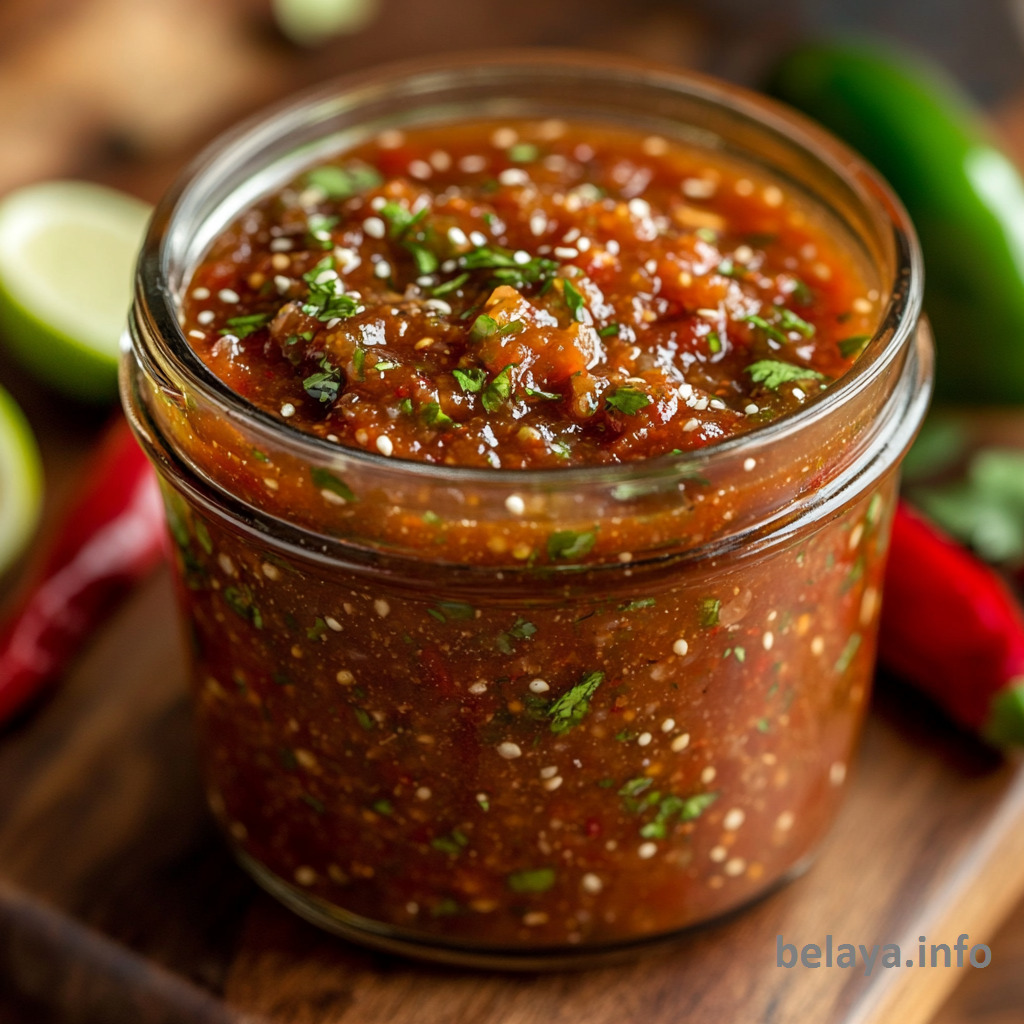 Serve chilled with tortilla chips, roasted sweet potatoes, or grilled vegetables. The salsa’s punchy flavor and smooth texture make it perfect for casual snacking or elegant appetizers.