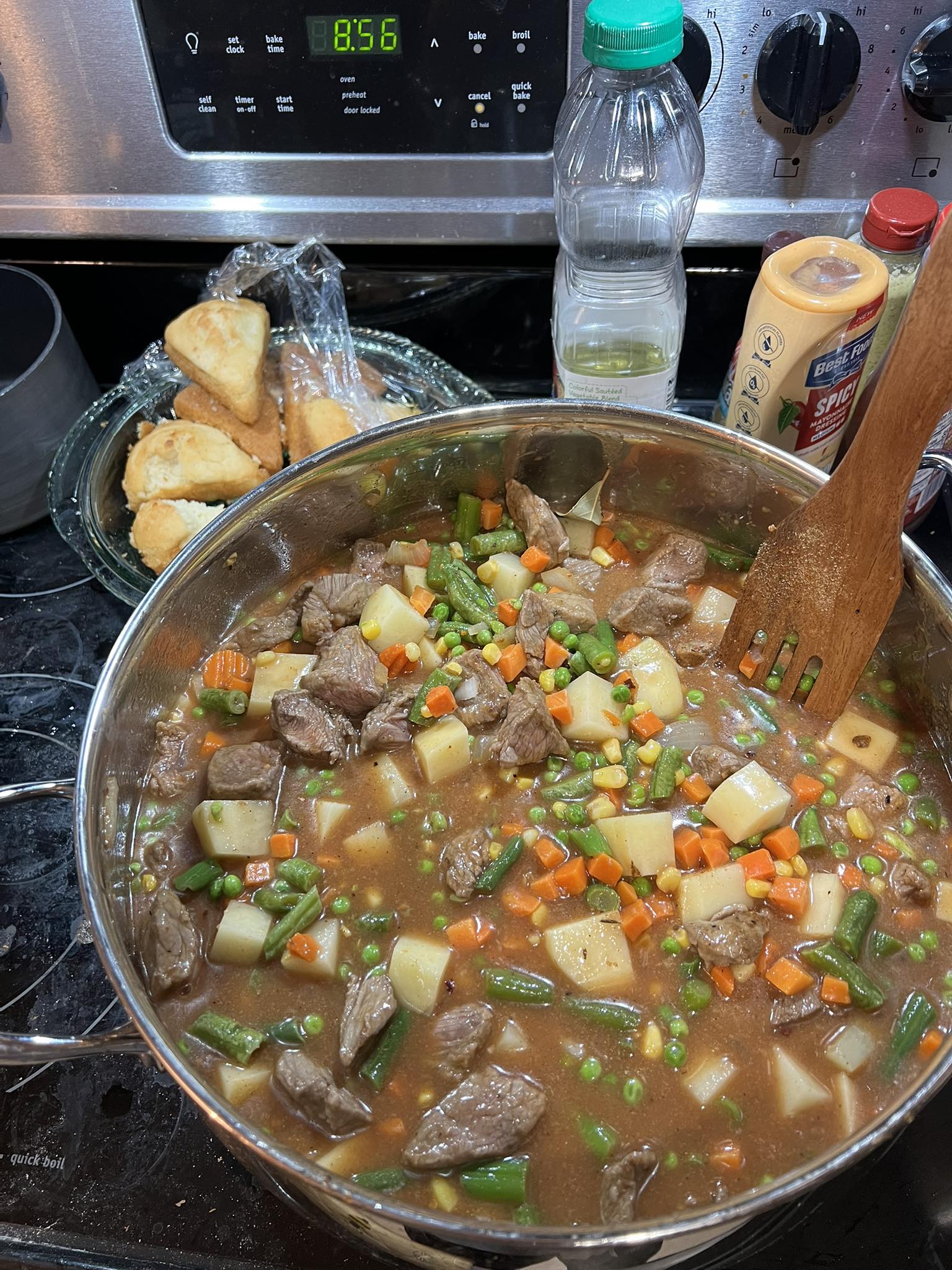 Simple, Wholesome Ingredients – The ingredients are easy to find and full of goodness. With potatoes, carrots, green beans, corn, and beef, it’s a balanced meal that feels nourishing and satisfying. The tomato juice base gives it just the right amount of tang, while the garlic powder and bay leaves bring out deep, comforting flavors.