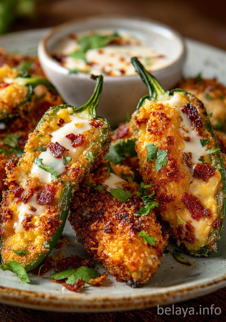 Baked until golden and bubbly, these poppers deliver a satisfying crunch with every bite, followed by a creamy, cheesy melt and a gentle kick of spice.