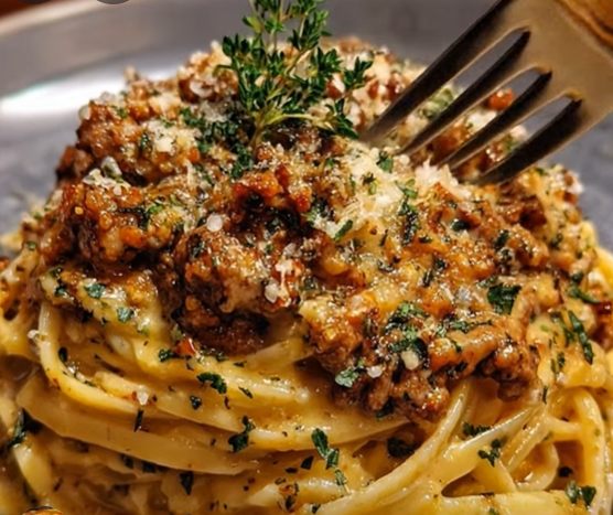 Rich, indulgent, and irresistibly smooth — this Creamy Parmesan Beef Linguine is the kind of pasta dish that turns an ordinary evening into something unforgettable. Tender strands of linguine are coated in a velvety garlic butter sauce, infused with savory ground beef and the luxurious melt of Parmesan and mozzarella.