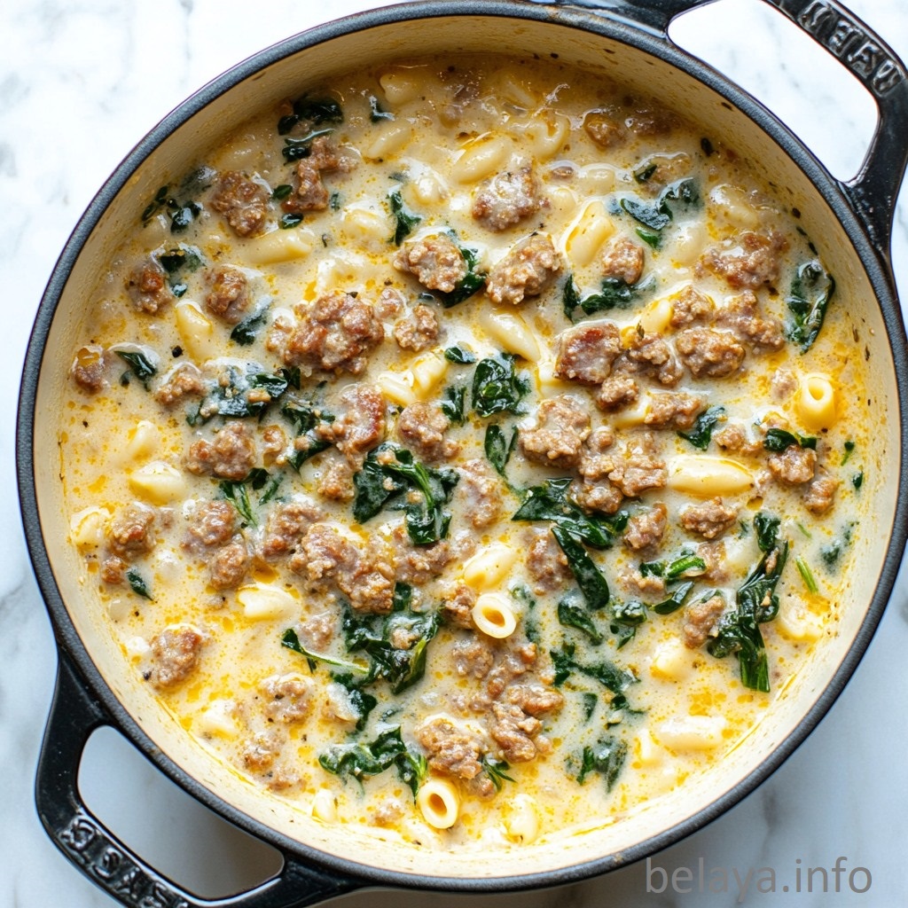 Perfect for cozy evenings, this soup is a delicious blend of savory sausage, tender pasta, and a creamy, cheesy broth that will warm you up from the inside out.