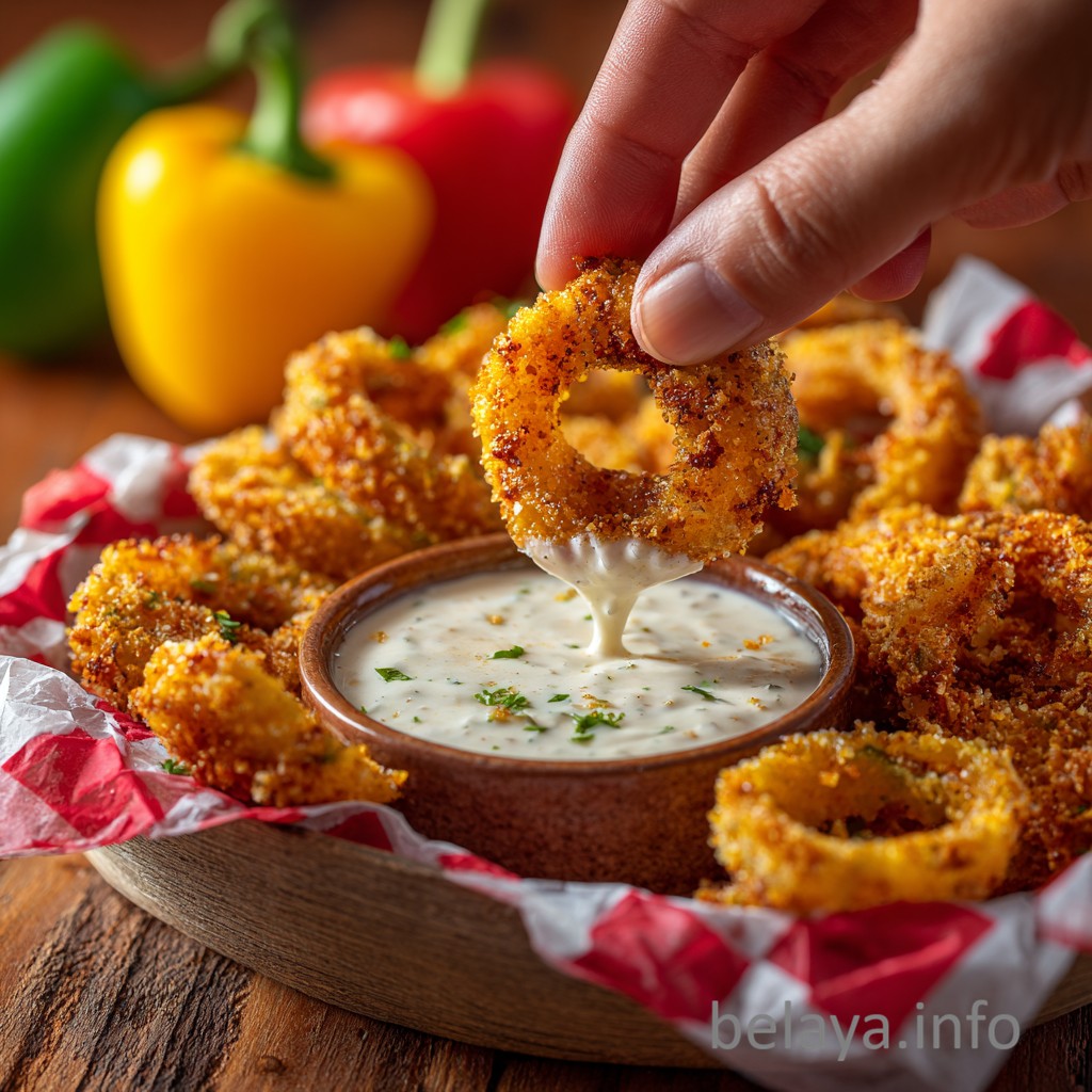 Thoroughly drain the banana pepper rings and pat them completely dry using paper towels.