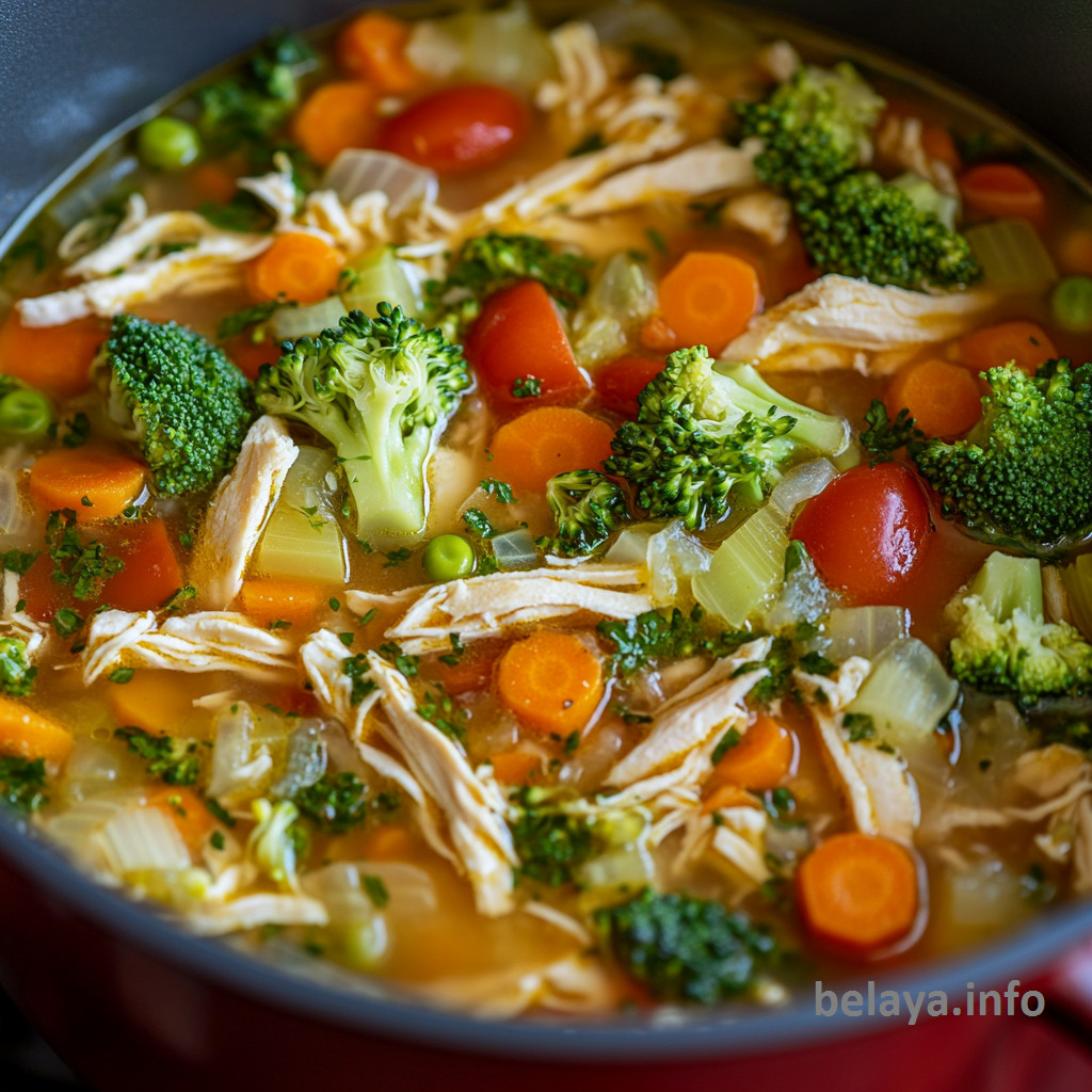 With tender shredded chicken, fiber-rich veggies, and a savory broth, it’s a detox soup that actually fills you up—perfect for those who want to eat healthy without feeling deprived.