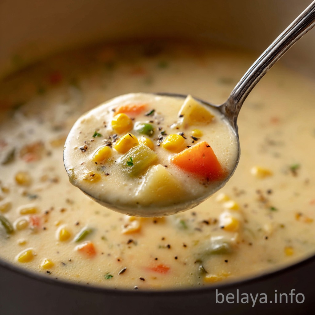 Pour in the heavy cream and continue cooking for another 8–10 minutes, allowing the soup to thicken slightly and become rich and creamy.