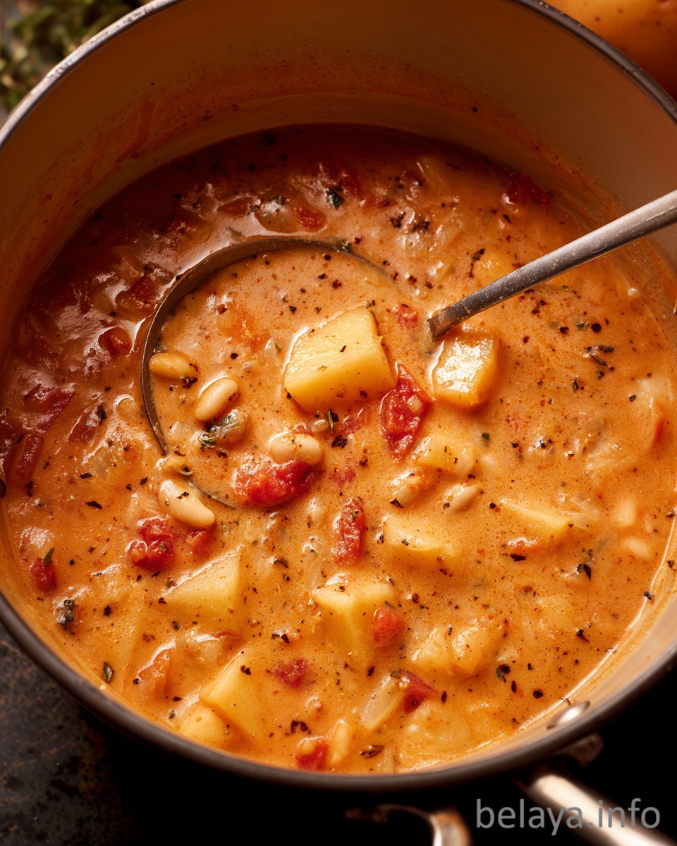 For a creamier consistency without losing heartiness, blend 1–2 cups of the soup and stir it back in. This creates a velvety base while keeping whole beans and potatoes intact.