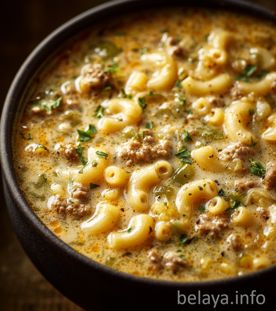 Rich One-Pot Meal: Everything cooks in a single pot—from browning the beef to simmering the pasta and broth—making it both flavorful and easy to prepare and clean up.