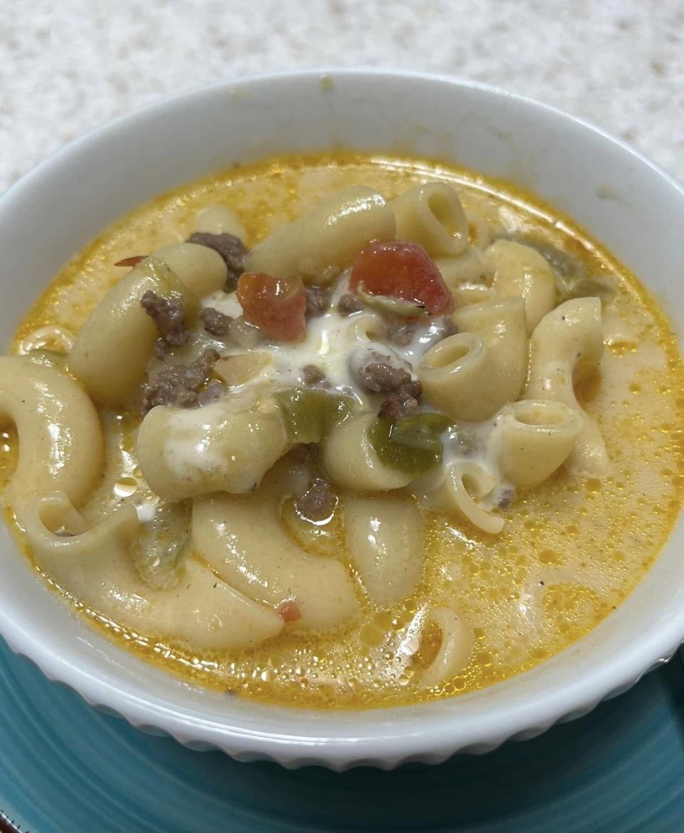 Simmered with savory ground beef, El Pato tomato sauce, and creamy Muenster cheese, it’s a nostalgic one-pot meal that’s both soothing and deeply flavorful.