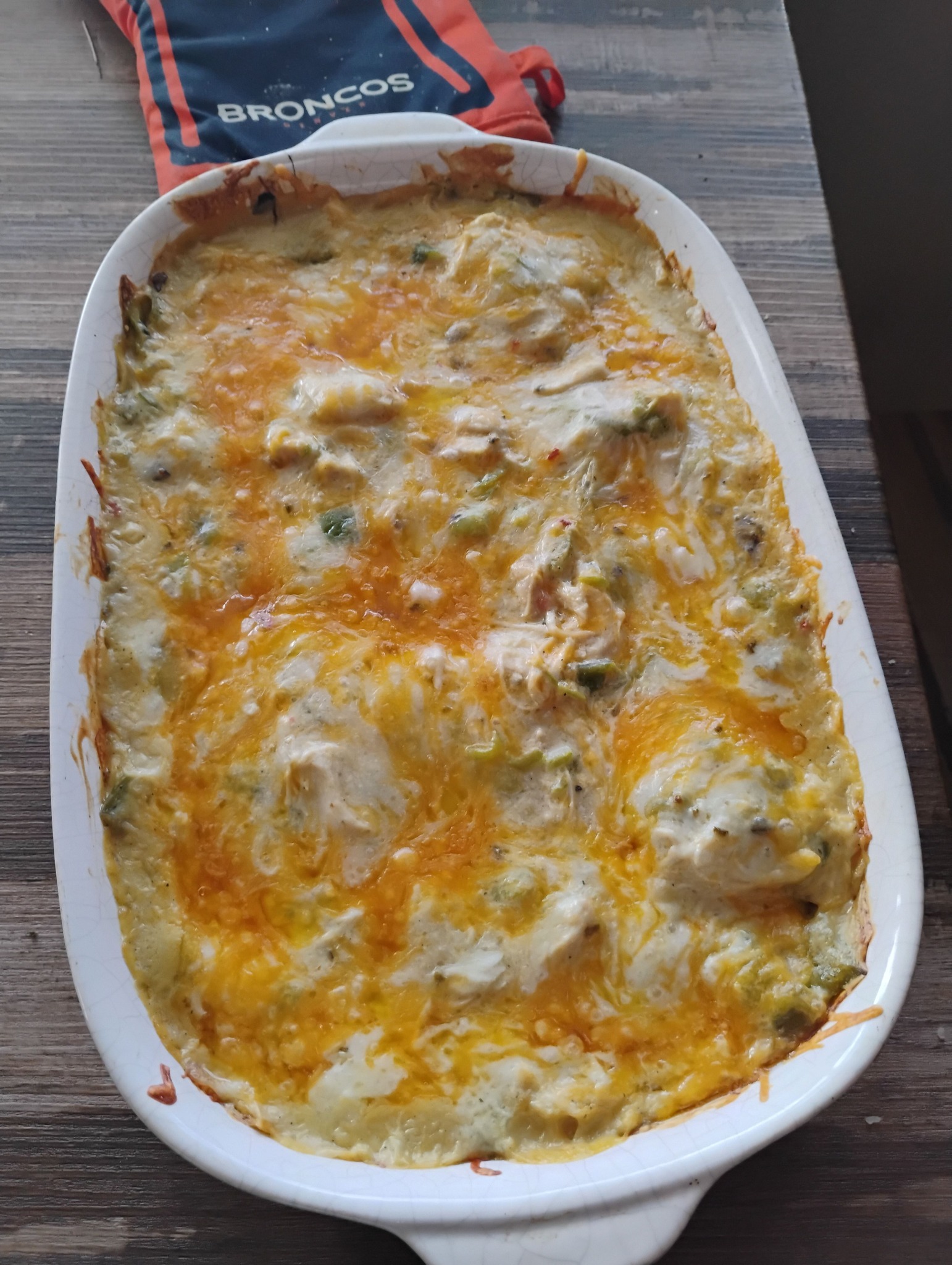 This dish delivers the warmth and satisfaction of a baked casserole while incorporating vibrant spices and green chile sauce for a more exciting, layered taste.