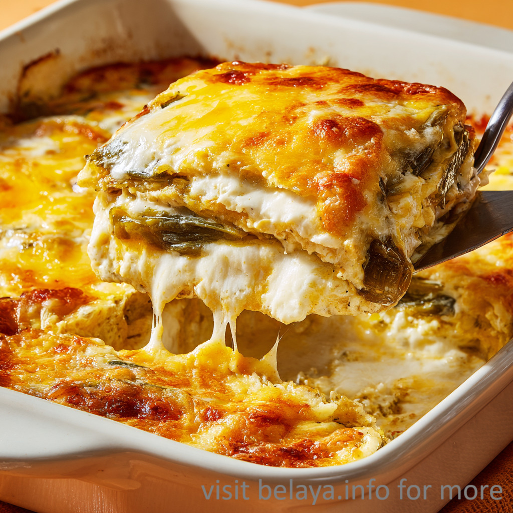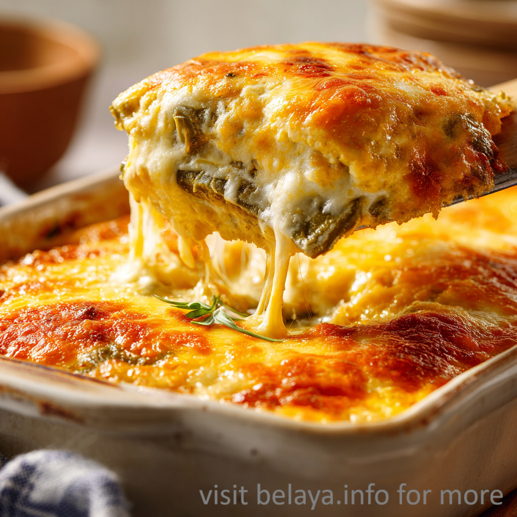 Once the casserole comes out of the oven, allow it to rest for about 10 minutes. This short pause lets the custard-like egg base firm up slightly and allows the roasted chile and cheese flavors to meld beautifully. Cutting too soon can make the layers fall apart — patience rewards you with perfect, clean slices.