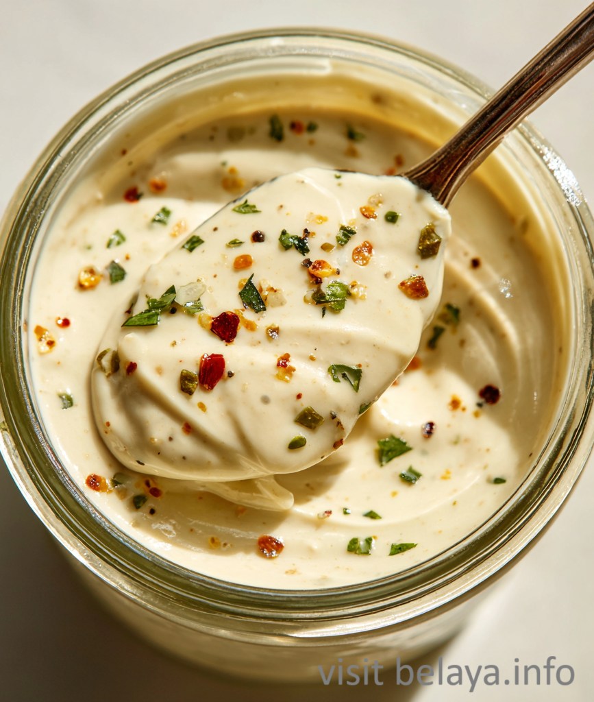 This sauce improves dramatically after a few hours of chilling. The spices infuse into the creamy base, mellowing the sharpness and creating a smooth, well-rounded flavor. For best results, refrigerate overnight before serving.
