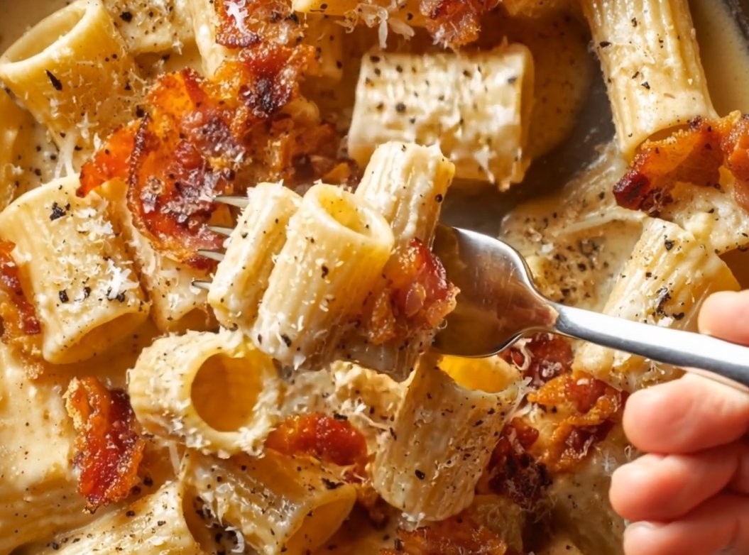Serve immediately, finishing with extra cheese sauce, reserved guanciale, and freshly cracked black pepper.