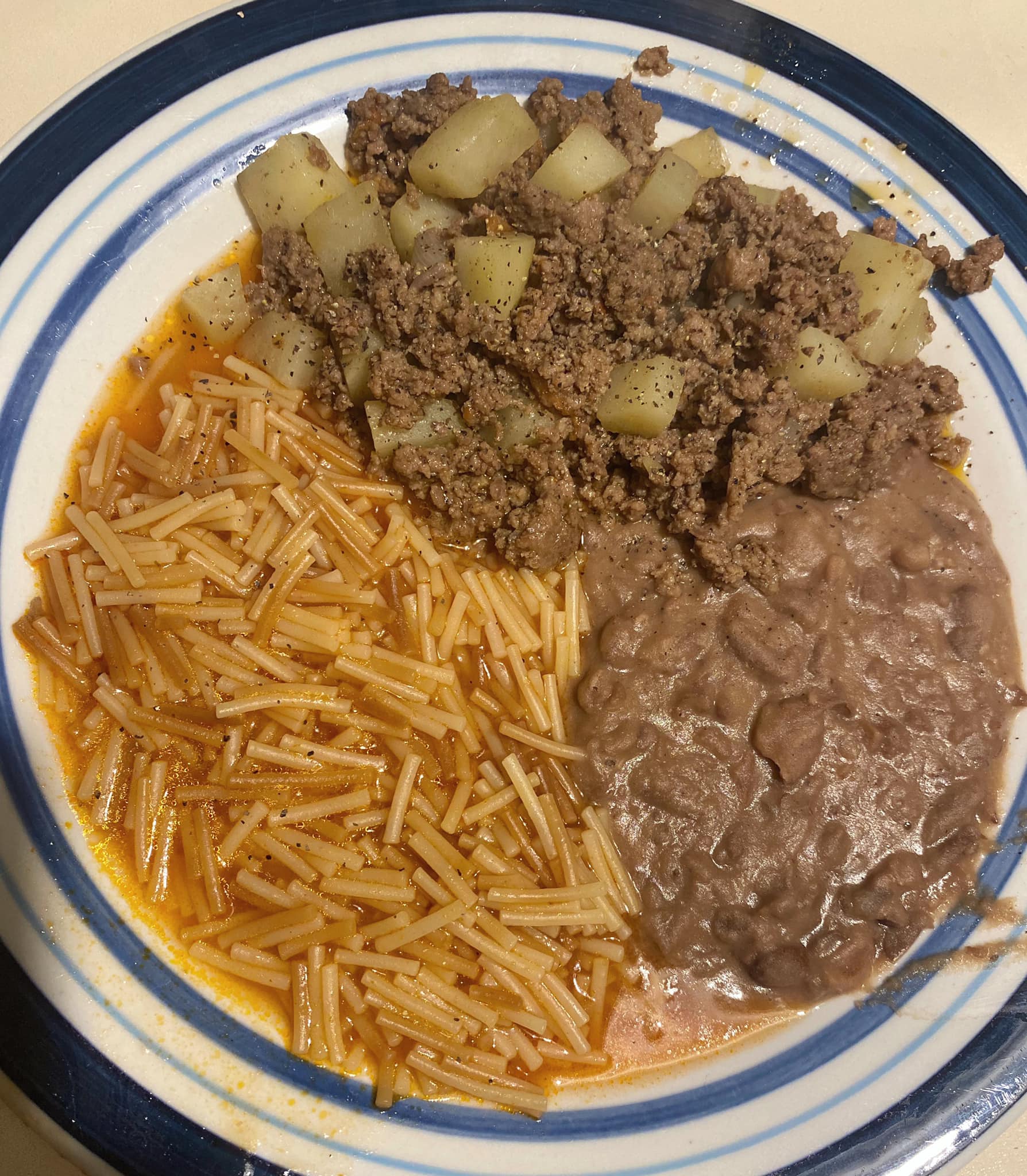 This traditional comfort food blends the rich savoriness of seasoned ground beef and tender potatoes with the earthy, smoky flavor of slow-cooked pinto beans and bacon. Every bite carries a balance of spice, texture, and depth that feels both nostalgic and satisfying.