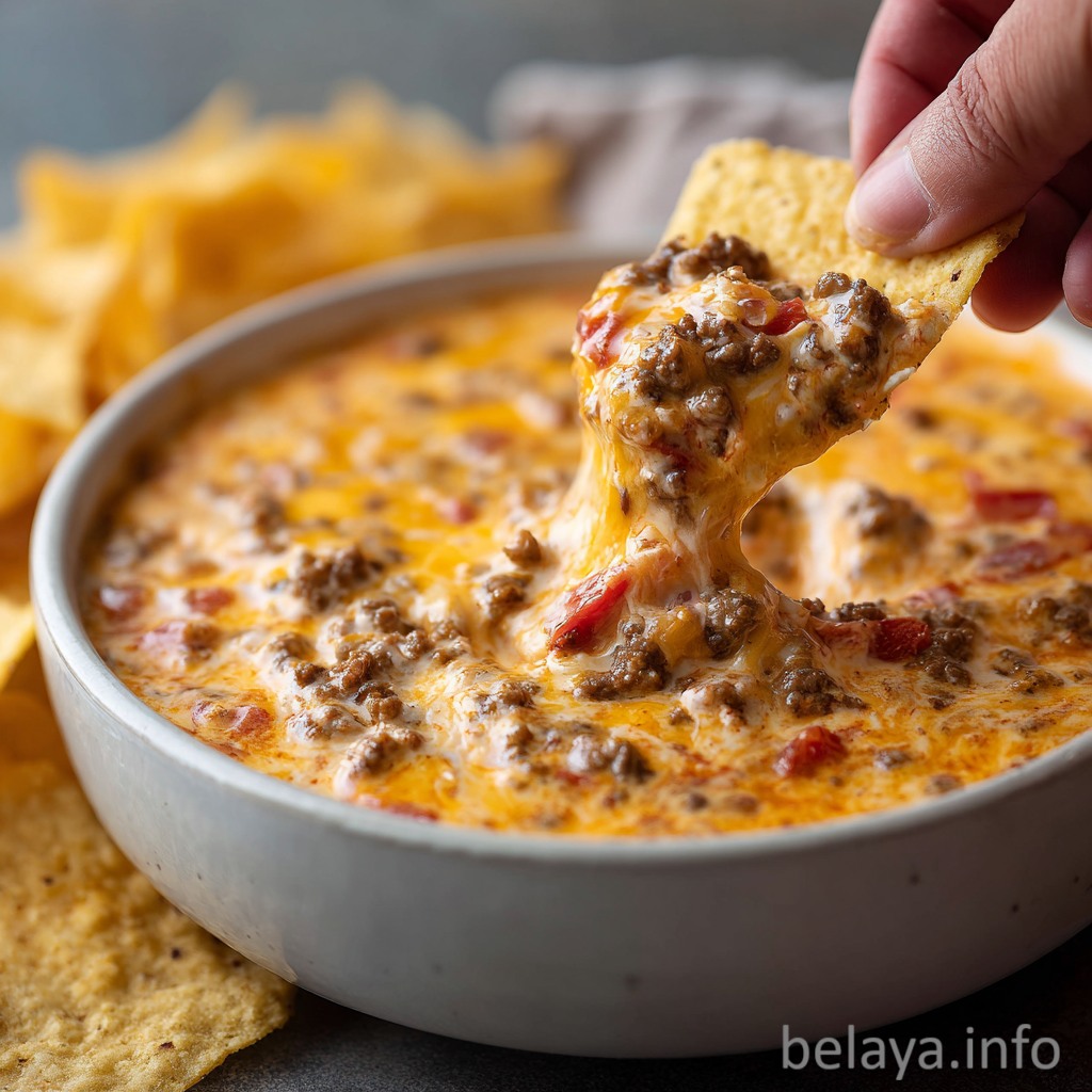 Each bite delivers the perfect balance of savory ground beef, smoky spices, and the tangy kick of Rotel tomatoes. It’s a dip that feels homemade and hearty, perfect for game days, gatherings, or whenever you crave something bold, warm, and utterly satisfying.