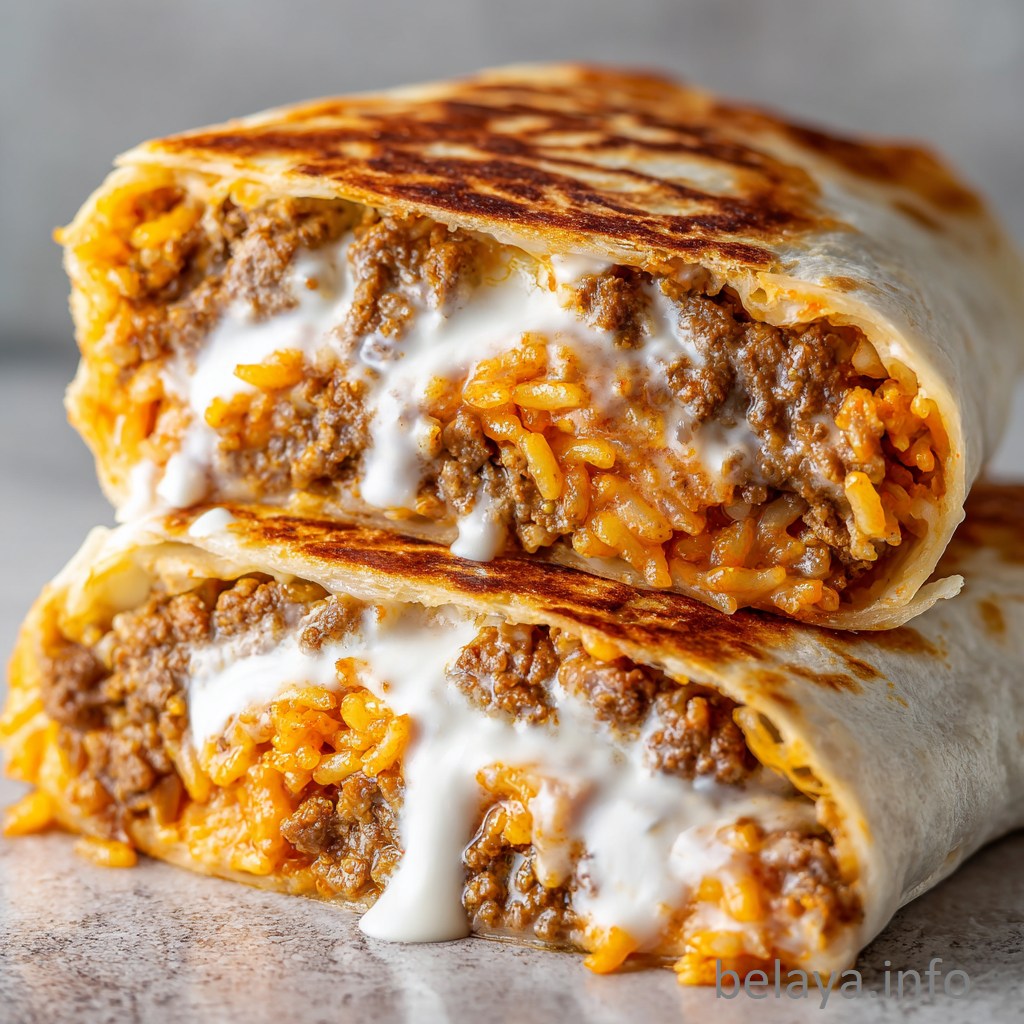 Packed with layers of seasoned ground beef, zesty Spanish rice, creamy chipotle sauce, and melty cheese—all wrapped in a golden, toasted quesadilla-style tortilla—this is comfort food turned crave-worthy. It’s a delicious fusion of burrito and quesadilla that satisfies every cheesy, spicy, savory urge in a single bite.